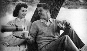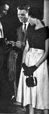 Never wear slacks on a date unless you're going to a picnic, to the beach, bicycle ridingor mountain climbing. And don't wear flashy clothes because you once saw your date wink at a girl in red satin. (If he likes her so much what's he doing with you?) You stick to your type. If you are a cotton gingham girl you will look ridiculous in red satin. Then you will start to feel ridiculous and nervous. No matter what the occasion, wear clothes that express your own personality, and that are comfortable. Even if you're wearing a formal for the first time you can feel at ease if a) it isn't cut down to here exposing all the goose pimples on your neck and shoulders, b) it isn't slit up the thigh (that's for night club singers), and c) it isn't so tight that you can't walk. Wear clothes that go together. Dangling rhinestone earrings don't go with a shirtwaist dress and flat shoes on a bowling date. And don't decide what you're going to wear one hour before your date. That's not enough time. One hour before your date your whole outfitfrom your fresh bra and panties upshould all be in one place and ready to put on. And you should be in the shower or tub singing amid the soap bubbles. That way you won't be a nervous wreck by the time the doorbell rings. You'll be ready, and you won't have to give another thought to the way you look. |