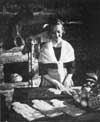 CoverJudy thinks the old saying "the more things change the more they are the same" might go for cooking. In the ancient kitchen at Sleepy Hollow, decked in Colonial garb, she had fun sampling the bread and cookies baked in the old fireplace ovenand she found them delicious. Of course the ancient recipes need to be "modernized"but molasses and ginger and spices from the Indies, so much in vogue then, still tempt the palate. Here she is ready to stamp out her own tasty gingerbread men. |