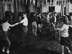 The Wildcats' Den is a one-room wing of a rambling one-story building, typical of Oak Ridge architecture. It is crowded afternoons and evenings but the big dance night is Friday. The football season is marked by a series of gay victory or consolation hops but other times of the year "Just Because" dances furnish excuse for fun and frolic. | ||
